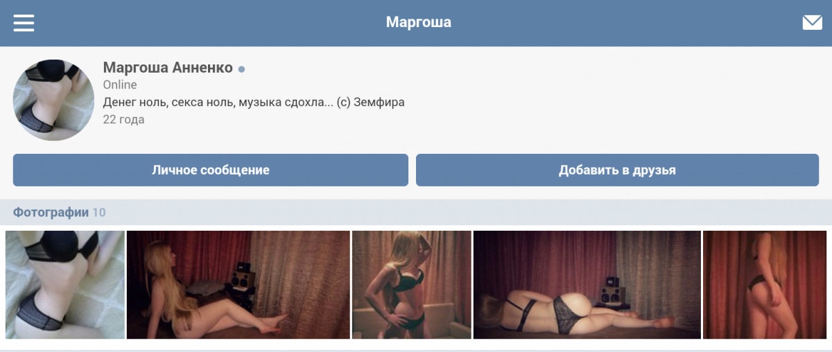 Барышня найдена в вк, страницы под разными псевдонимами активны примерно месяц, телефон в переписке. Кста, не знаю кто ведет переписку, но ведет творчески, я возжелал деву через пятиминутное общение. От себя рекомендую не применять стиль письма «брутальный», может и забанить. На блядовахте совместно с двумя подругами (вживую не видел, скриншоты внизу сообщения), работают по сменному графику, поодиночке.