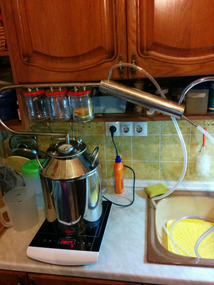 Прикупил. Алковар "Мечта" (легко янексицца и гуглицца, чтобы не сочли за рекламу), полный нерж, 3 сухопарника, 12литровый перегонный куб, термометр.