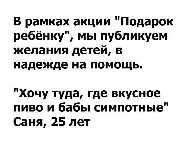— Как мужик мужика я тебя понимаю. Поэтому сделаем так. Я напишу тебе справку, но только для жены, и теперь будешь платить по 10 рублей, хватит тебе на пиво и сигареты.