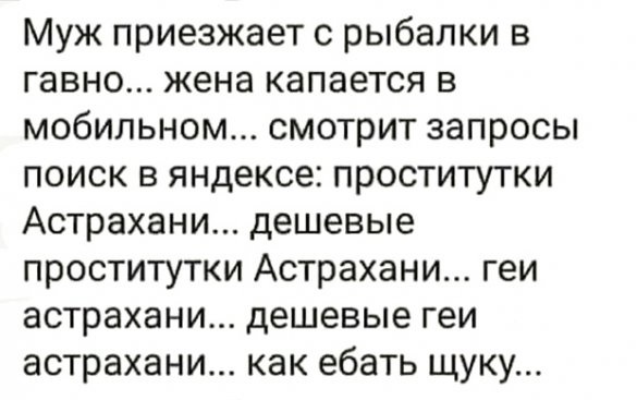 - Да все по тому же, говорит, что я ничего по дому делать не хочу. Вообще, мне иногда кажется, что если я умру, то моя жена подойдет к гробу и скажет: «Ну что! Специально умер, лишь бы нихуя не делать???»