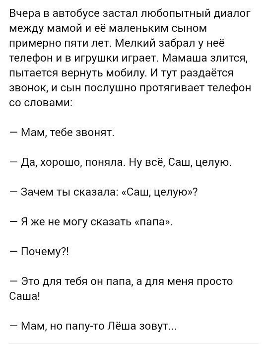 - А ты чего закрылся? Ты кушаешь хорошо, вежливый, отцу не грубишь, чего тебе бояться?