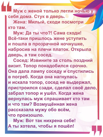 - Отец мне сказал, что я появился на свет из-за порвавшейся резинки. И что-то мне не хочется покидать этот мир из-за неё же...
