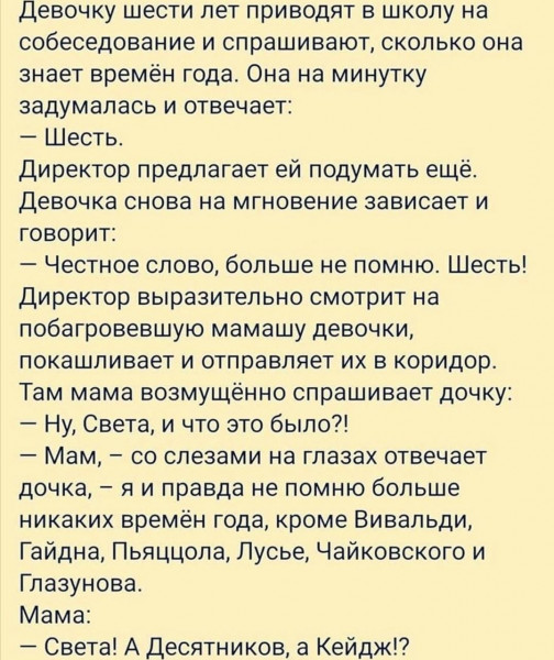 — Мам, у меня сегодня 14 уроков, буду утром.