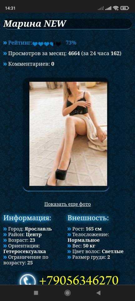 Хаха, я как раз хотел спросить по обстановке, но вы сами написали. В общем, ничем актуальным не порадуете) А за 8к смысла идти нету, потому что там 5к диспетчеру-начальнику на безбедное существование. Да и просто они там ебанутые. Здесь даже не подходит выражение в духе Ярославль с Москвой спутали. В Москве от 5,6,7к есть нормальные девушки, на любой вкус. Кто не в теме, просто зайдите на московский сайт. Там даже у топ-1 ценник 5 или 7 к. Так ей такие поэмы поют в отзывах, закачаешься. У нас эта крыша людей за дебилов считают. Везде фото мои, 19 лет, приехала на неделю и прочая туфта для неопытных. И ценник 7-10к. Отчего зависит интересно? Один хрен гоблины, наверное. Девушка за 2к, 5-себе. Фотки-то ещё ставят выше среднего, скажем так. И вот эта фраза: проверено, щас внимание