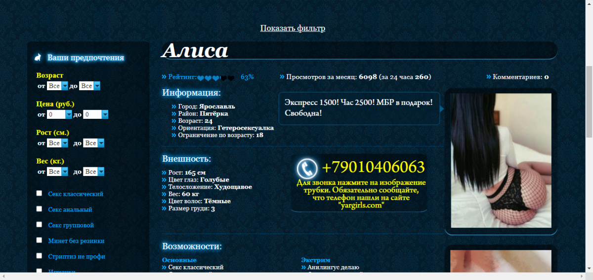 Если уж на то пошло, то ценник в Ярославле должен быть 3, ну 3,5 максимум. Это для девочек сообщаю. Кстати, это можно понять по анкетам за 7-8 к, где большую часть получает диспетчер, девушке 3к и остаётся. В Москве за 5(!) полно симпатичных девчонок. С чего наши решили, что у должно быть дороже чем в Москве? Как бы ебанутые. Вон Василиса давно все поняла и имела свои 150-200к в месяц. Все были довольны.