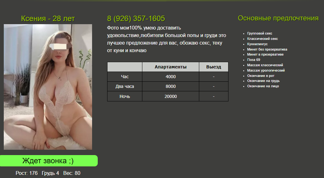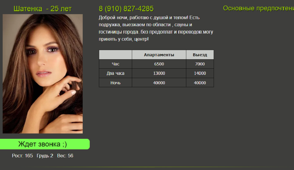 Для заманухи наставили фоток актрис и моделей, анкет навыдумали а в наличии скорей всего пара баб + диспетчер и хаты нет, только выезд.