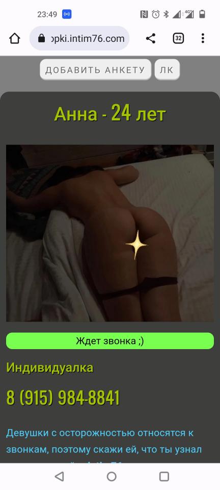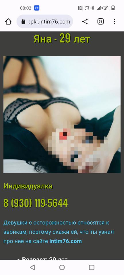 Анна 24 года по анкете. Побывал сегодня. принимает в брагино, тутаевское шоссе 64. Час 4к,экспресса нет. По внешности: лет 30 около, наверно, может чуть меньше. Живот такой что я подумал что она в положении..., грудь не красивая и в целом все тело не женственное. Лицо писали что милое,я бы сказал что похожа на учительницу из школы. В целом все очень не хорошо там. Остался только из-за комментария тут, что "облизала всего и за ласками к ней" нихрена не понял где это. Еле член поднялся на нее. После первого захода не было желания повторять...собрался и убежал. Я считаю если был бы экспресс за 2к ещё можно было бы кому-то ходить к ней, но не мне,