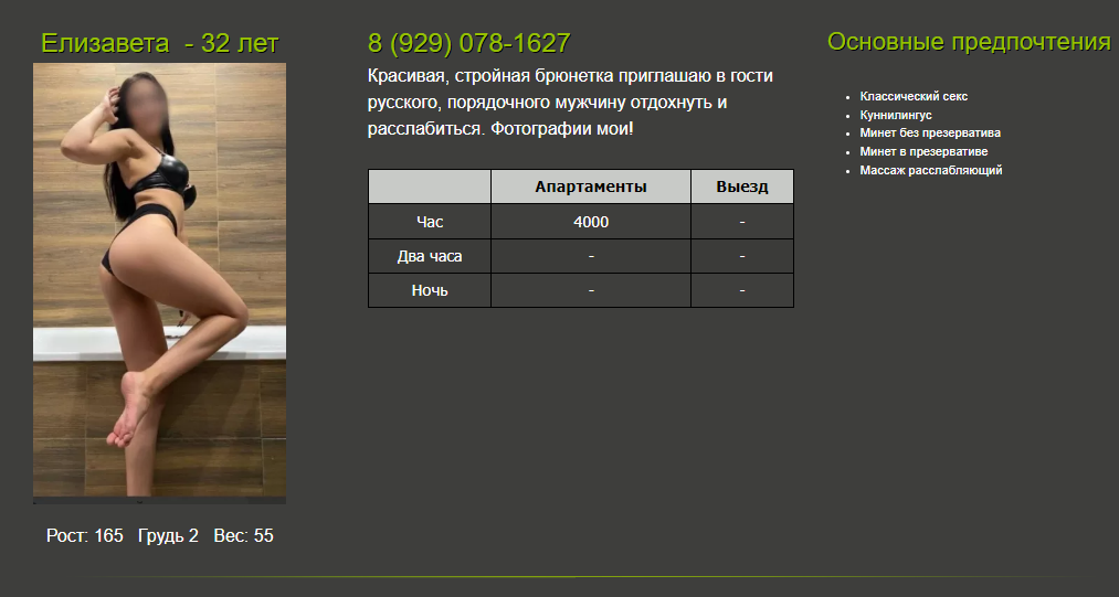 Единственное только , тут есть момент --- выставляет свою анкету как анкету проститутки но по факту использует сайт просто как очень удобный вариант .