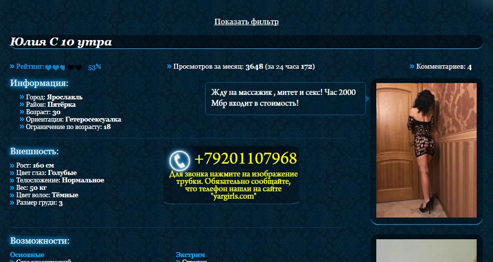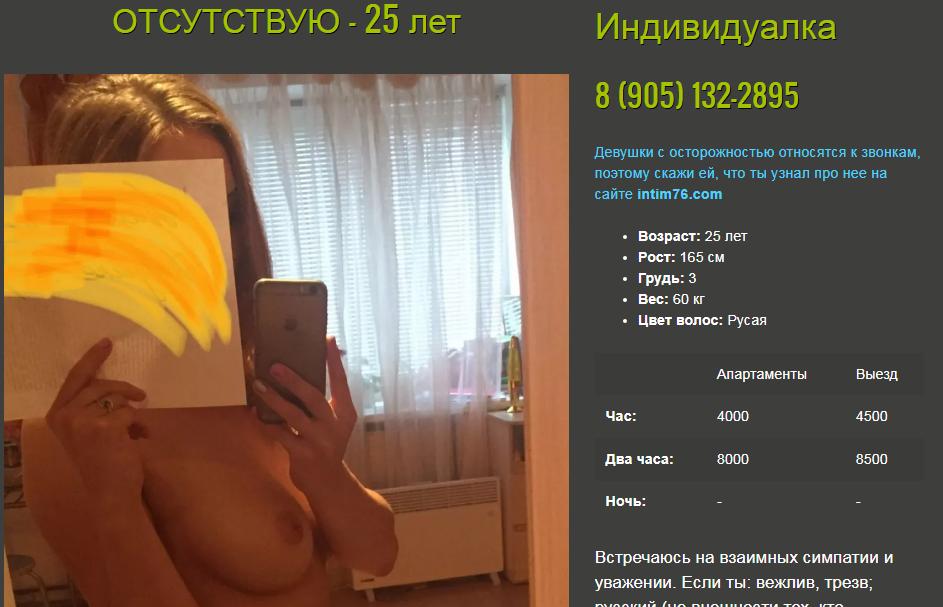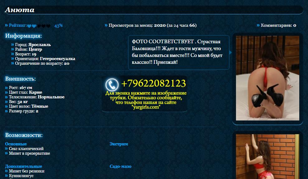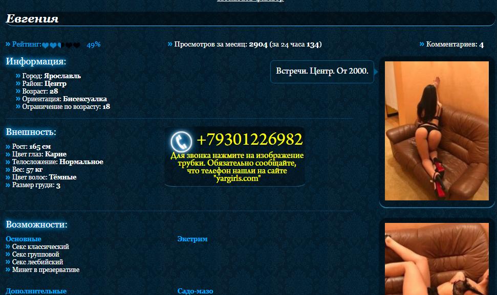 Был у нее постоянником года полтора назад! Цена была 2000 с первого раза. Ощущения самые прекрасные. Очень необычная барышня. Разговаривает на Вы даже в постели. Фигура хорошая для 40+. Видно, что секс ей нравиться. Позы любые, МБР прекрасен, попа табу, но анилингус любит и делает. Пару раз встречался в формате ЖМЖ, 3000 т.р., подруга тоже хороша, но чуть покрупнее. Лесби не было. Поток у нее был всегда, несмотря на то, что принимает в Брагино на Урицкого. Видимо поэтому ценник поднялся. Не давно звонил ей несколько раз, трубку не взяла. Думаю, что постоянников слишком много стало