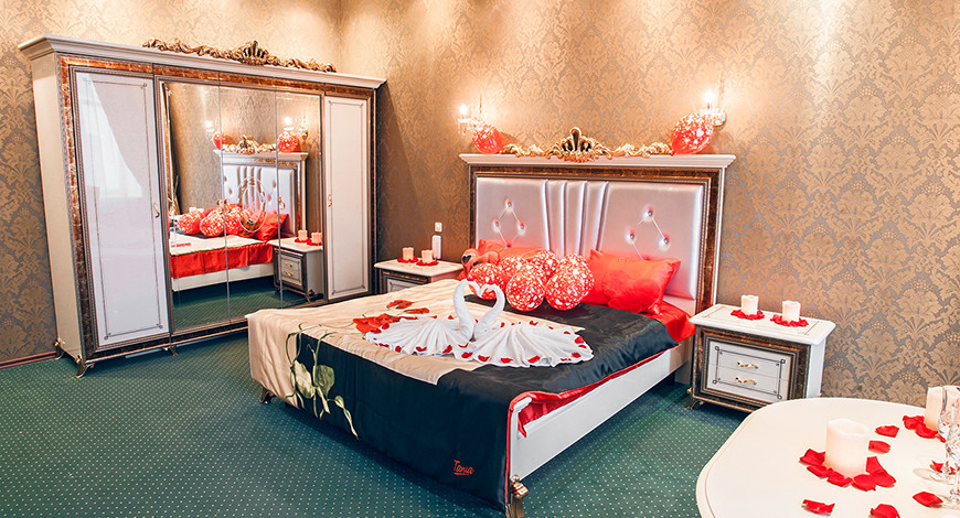 Мы предлагаем вам остановиться на романтический вечер в нашем отеле. В этот вечер вы сможете отдохнуть от серых будней в роскошных венецианских интерьерах при свечах, расслабиться в джакузи с бокалом холодного итальянского шампанского и насладиться друг другом. Прекрасным дополнением вашего вечера будет украшение номера лепестками роз, корзина фруктов , воздушные шары и изысканное постельное белье.