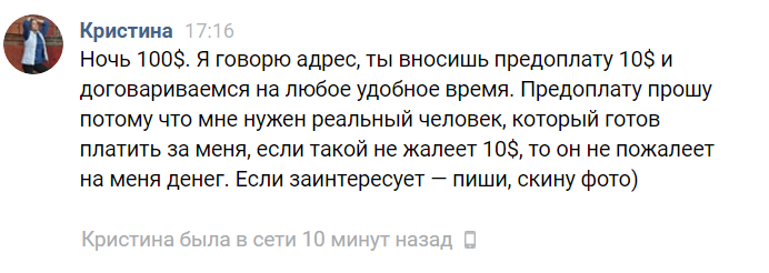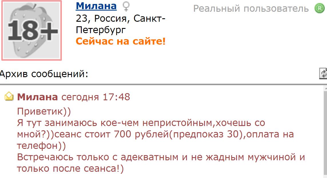 Ответила Анжелика: «Пришлю 3 фото за 50 рублей. Если понравлюсь – будет встреча. Сначала деньги на телефон.»