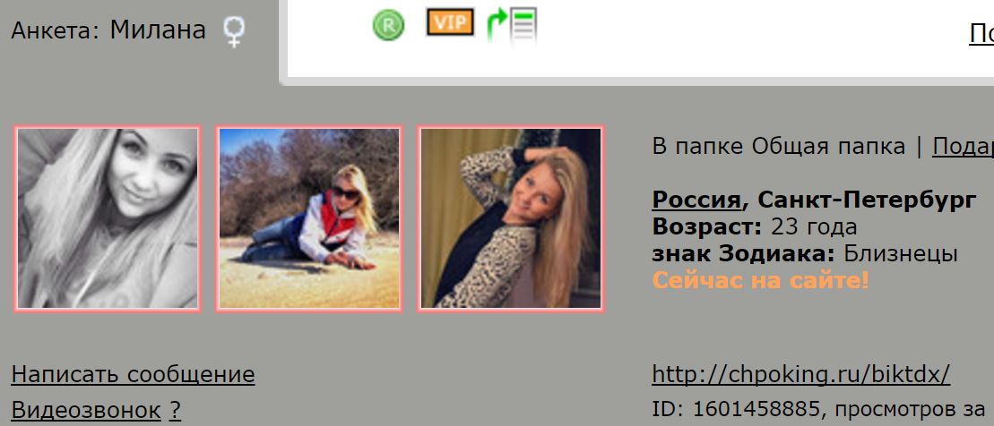 По этому номеру выгугливалась некая Ира Иванова id2три59пятьдесят864, 90-го года издания вполне @бабельная (судя по фотам) и Анжела из Масквы, с объявой: «Ищу ласкового и заботливого, отвечу на звонок… вацап, телеграм»