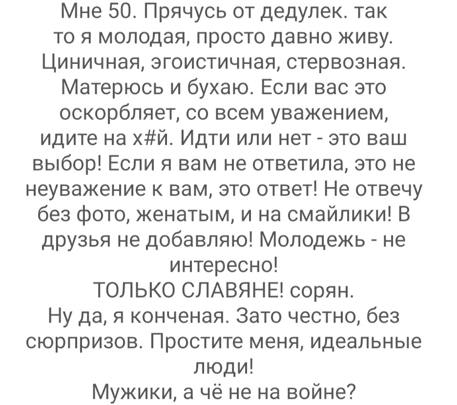 Если уж отключить мою циничность и ироничность, то поводом может быть только какая-то большая любоффь, а это штука редкая и уж точно не ищется целенаправленно по анкеткам на СЗ. Ну а когда любоффь то там вроде и правила уже зачастую не действуют. Вон выше напесали про РСП и в целом сложно не согласиццо. Но есть у мну приятель (все при человеке - внешность, мозги, работа интересная и вполне себе оплачиваемая) так я охренела когда он женился на РСП да еще и не с одним дитём. И готова была ставки делать когда разбегуццо. Но живут и живут и что самое главное все ваще заебись. Его пытала как так сложилось, так говорит что просто невероятно ему с ней кайфово и сам в шоке что так попал.