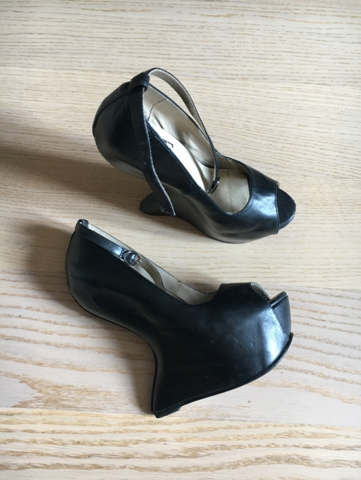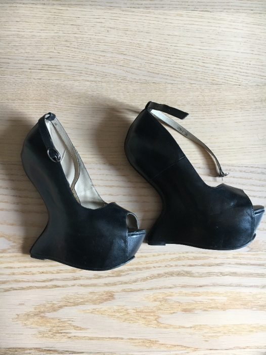 Девушко весь ранее согнанный вес набрала абратно (вазможна даже "перегнала" ), и теперь типаш имеет весьма плотный - исчо не пышка, но, блеать, худышкой иё не назвать уш точьна - тут не склонность к полноте, тут, блеать, есть уже сама полнота, пусть и без перегибов . Здоровенная для иё небальшых, вопсчем-то, габаритафф, жопа на любителей жоп (есть те, кто щщитает, што "баба без жопы - деньги на ветер", ну вот, вам сюда адназначьно ). На ногах были туфли на платформе с какими-то каблуками в форме буквы "зю", чем-то пахожы на ету: