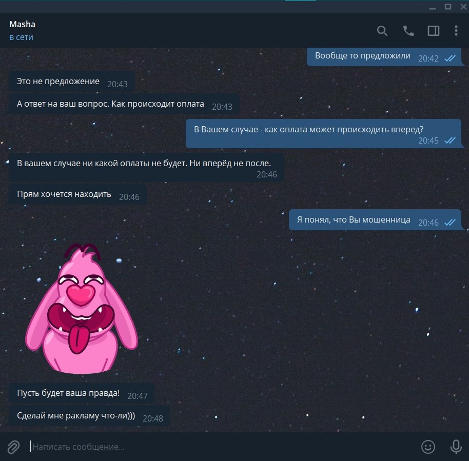 UPD: Хотя бдительность на высоте. Да и альтруистическое желание помочь собрату вызывает уважение.