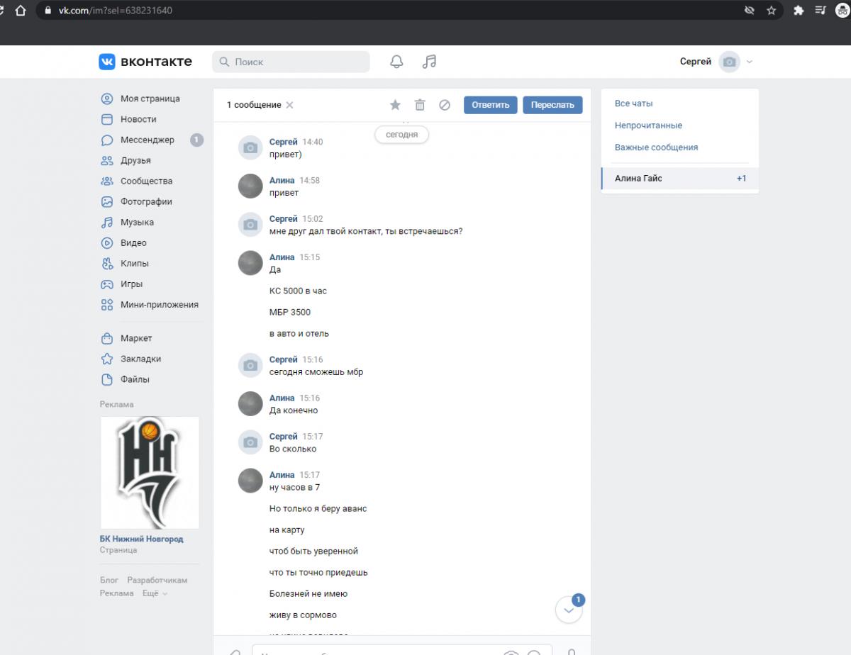 Было бы полезнее, чтобы выложили всю переписку с ней, от начала и до конца, где нашли ее, какую рекламу она давала или кто посоветовал. Интересно, страница во Вконтакте у нее зарегистрирована с 2008 г. (по первой ее записи на стене), наверное она начинающая проститутка, а может именно мошенница. Кто ее знает или тестировал, поделитесь мнением.
