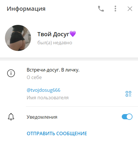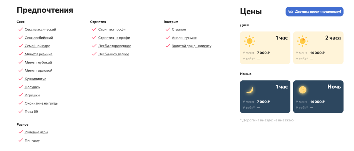 Описывать ее методы и тактику было бы глубоко неэтично, поэтому я ограничусь лишь упоминанием того факта, что она использует свой опыт и умело манипулирует людьми, увлекая их обещаниями легкого досуга.Ее способность обращать на ее рекламу, внимание и создавать иллюзию страшно коасивой индивидуалки. делают ее анкеты облазнительными для многих, жаждущих хорошего отдыха.