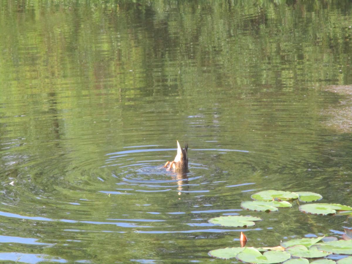 Потом долго сидел у пруда, наблюдал за утками, как они среди кувшинок кверху жопой ныряют.