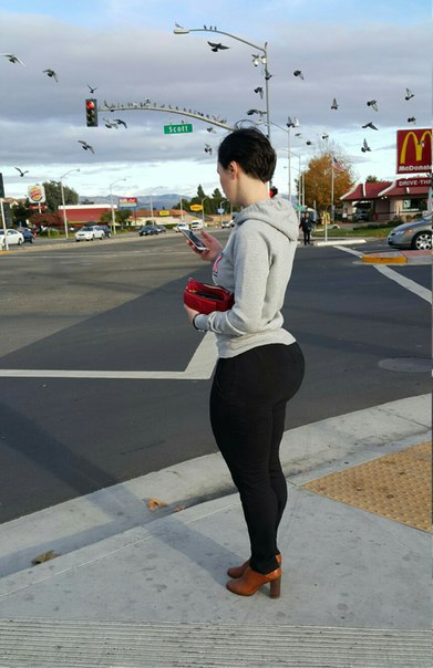 Ты нашёл тётку с катастрофически непропорциональной фигурой. Какая у неё жопа, по этим картинкам не очень понятно, но скорее всего плоская.