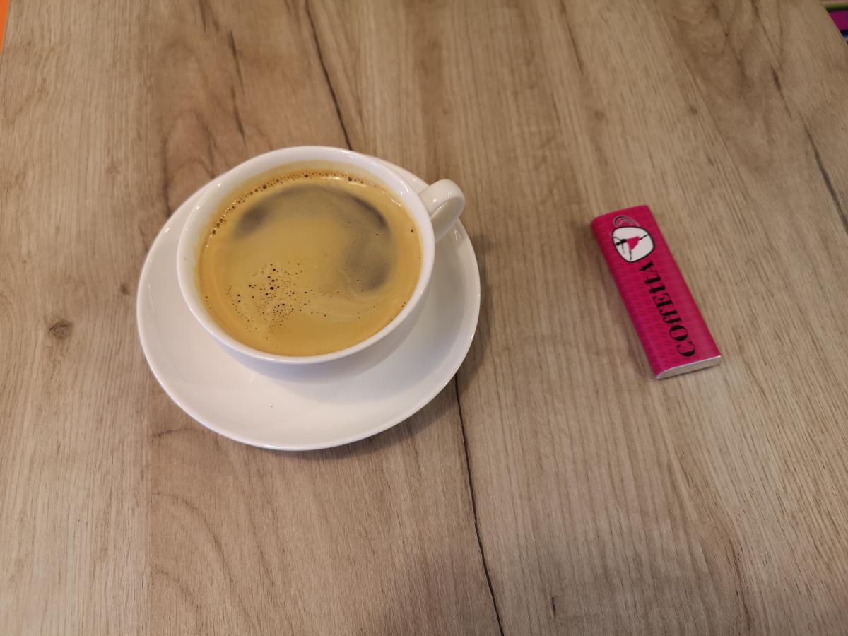 Кофе же произвел двойственное впечатление. С одной стороны, он хороший, и может быть выпит без сахара и молока. С другой стороны — чувствовался ненужный привкус горелой хлебной корочки, и почти не чувствовалось кислоты, хотя кофе — эфиопский. По прошлому опыту, такое бывает, когда плохо настроена кофемашина.