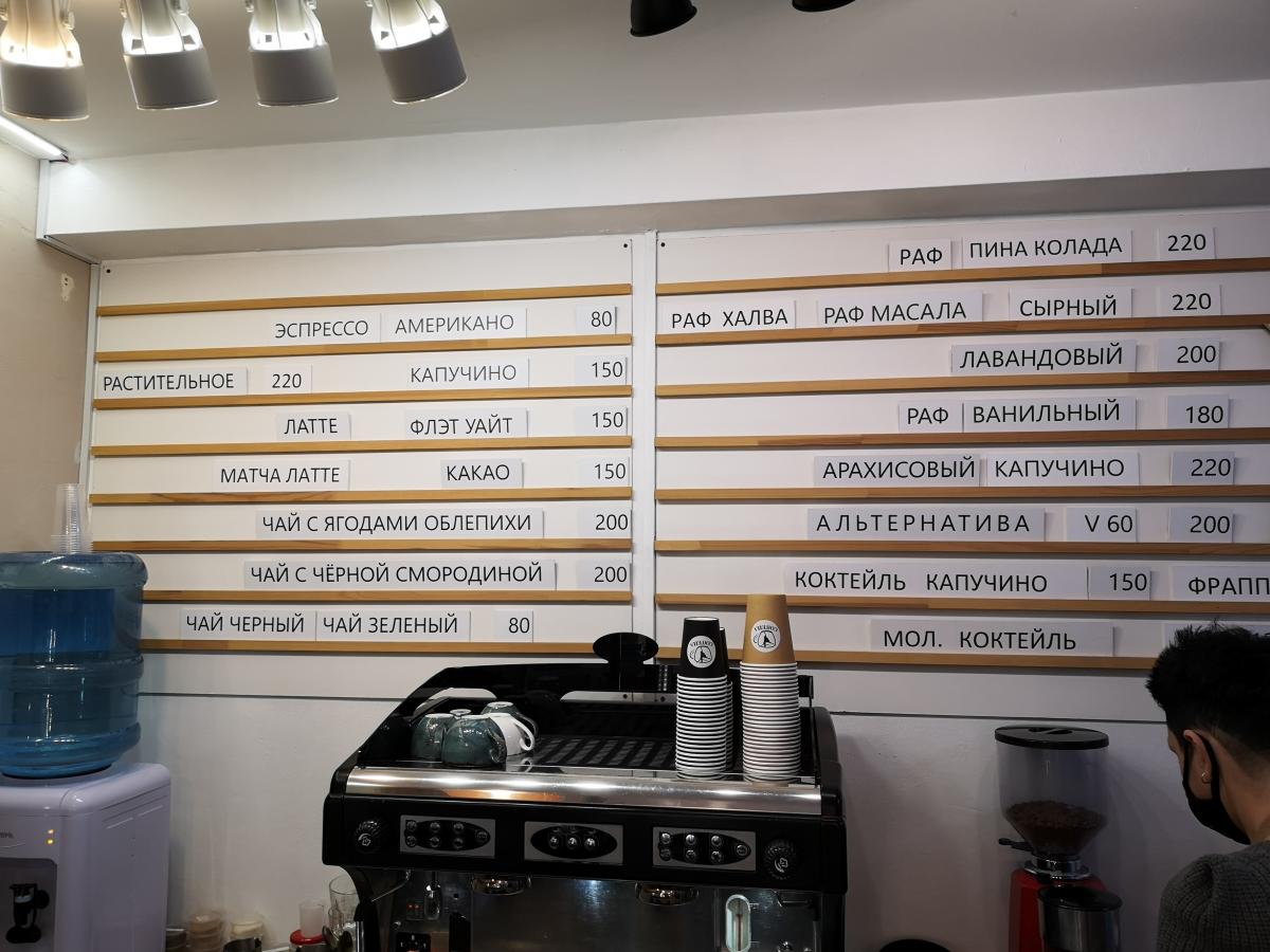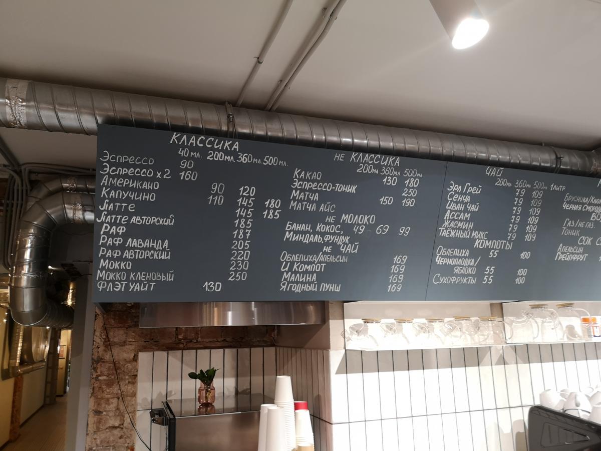 Ценник вполне демократический, кофе дешевле ста рублей. Подробности видны на фото.