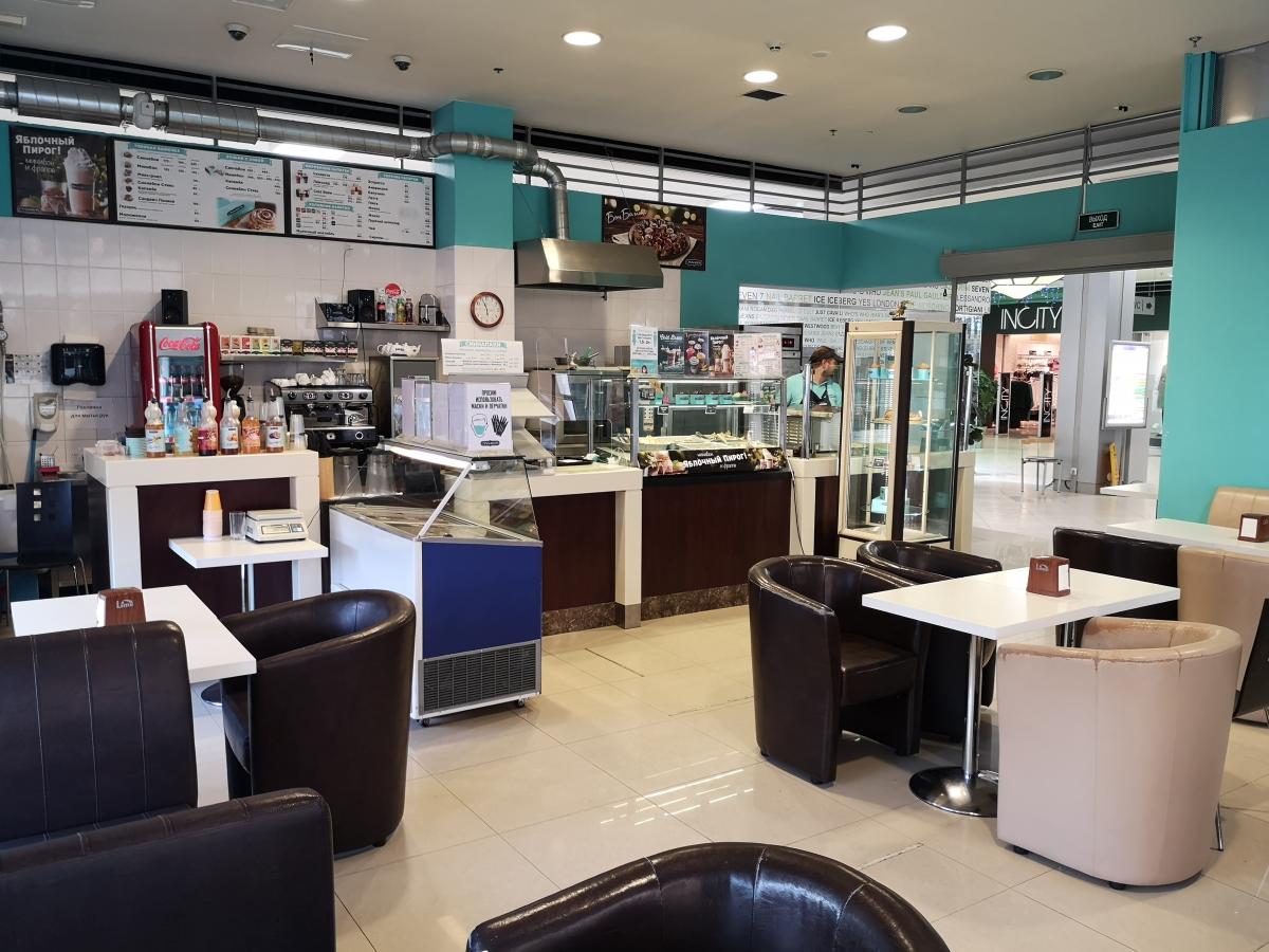 Очень маленькое помещение, в которое к тому же выходит прилавок ремонта айфонов. Помещается только 2 маленьких столика.