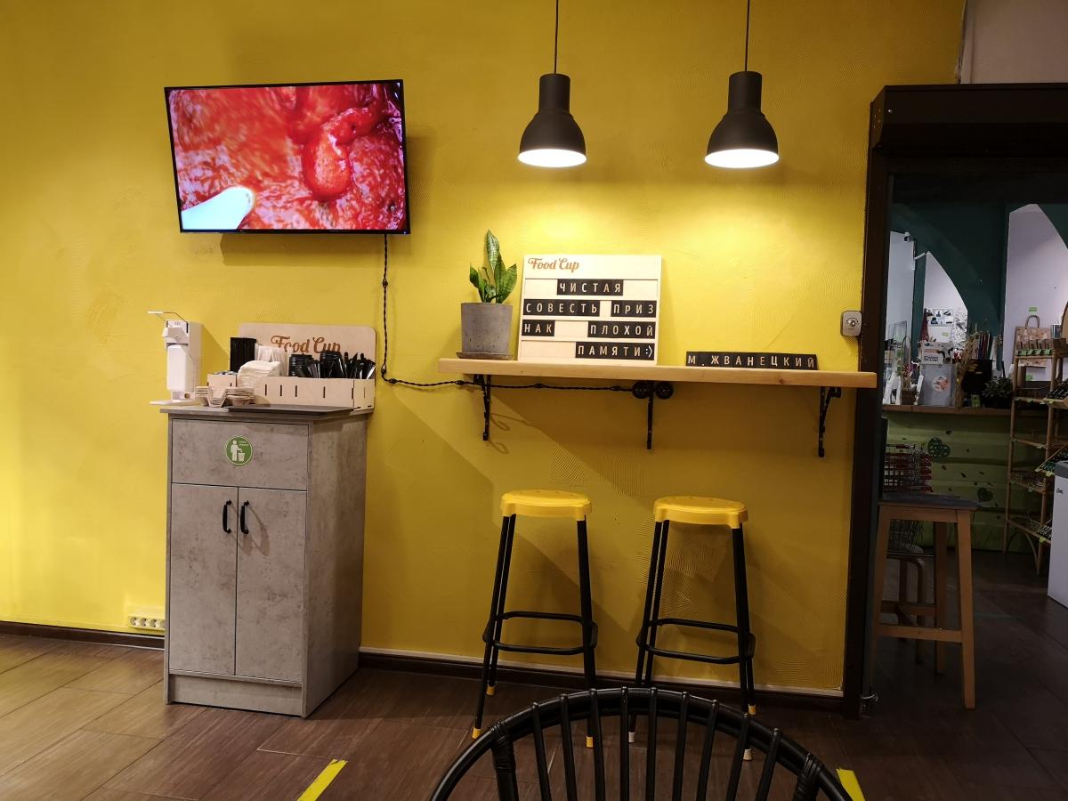 Однако все заточено на вынос. Картонные стаканчики и т.д.
