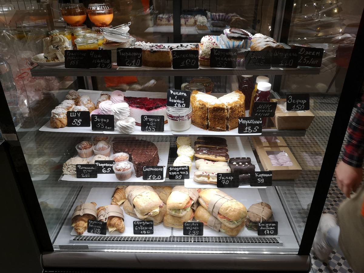Выбор десертов скуден, все из магазина. Выпечки вообще не было. Взял шоколадку - обычная.
