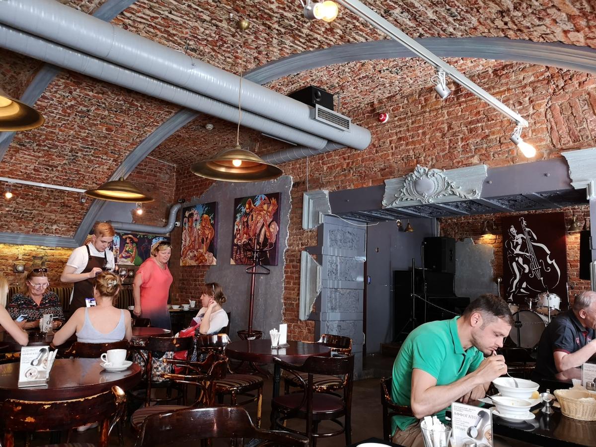 Данному заведению больше подошло бы название "Склад". Интерьер дизайнерский - кресла и диваны из поддонов, столики из бочек, в углу торчит стрела погрузчика... Впрочем, есть еще второй зал, куда я не дошел.
