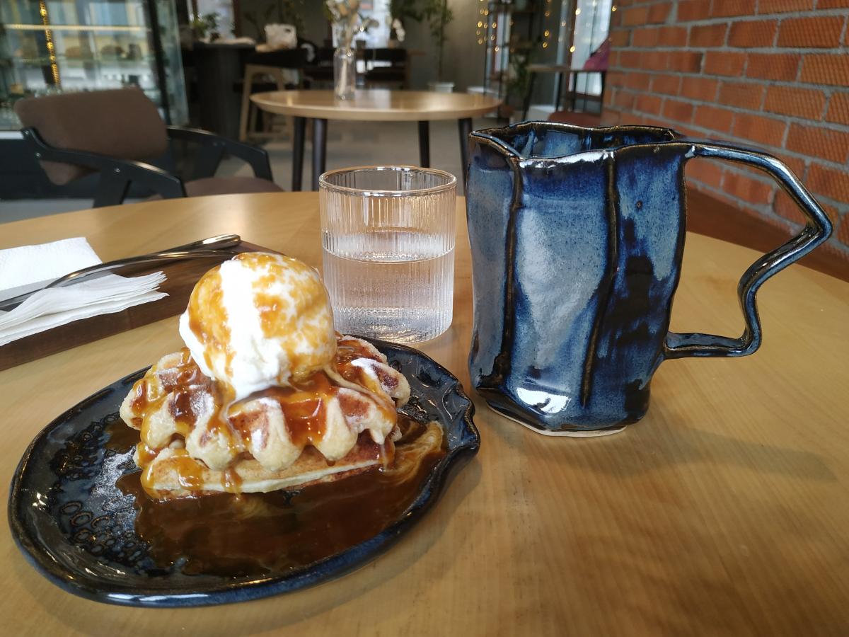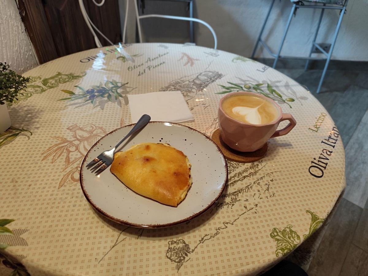 Меню - двусторонняя картонка, где всего хватает (кроме кофейного разнообразия) завтраки -глазунья, бриошь с форелью или пастрами, оладьи, боулы, гриль чиз, сырники, запеканка, всякие пасты, салаты, супы. Десертов в меню только два - пирог яблочный и черничный. В общем место больше для пожевать. Точно не для кофеманов.