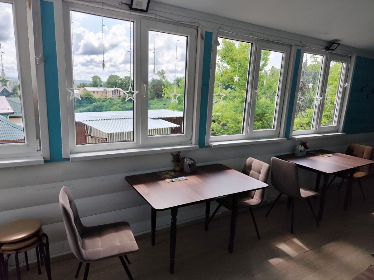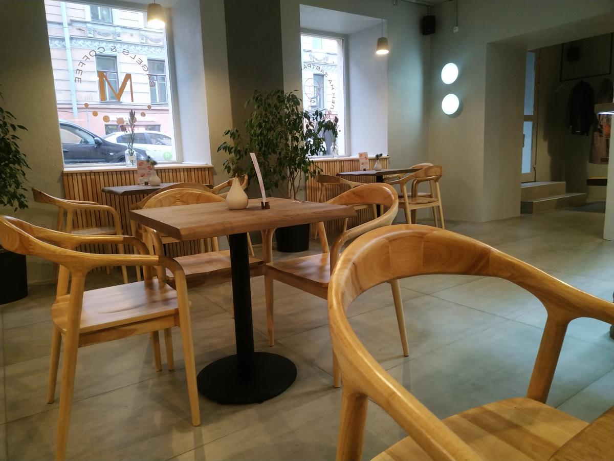 Сам зал метров 35, минималистичный дизайн, 9 столов вдоль стен, один большой длинный общий с кассой -посередине. С/у похож на примерочную- много света, большие зеркала, всё белое и светящееся.
