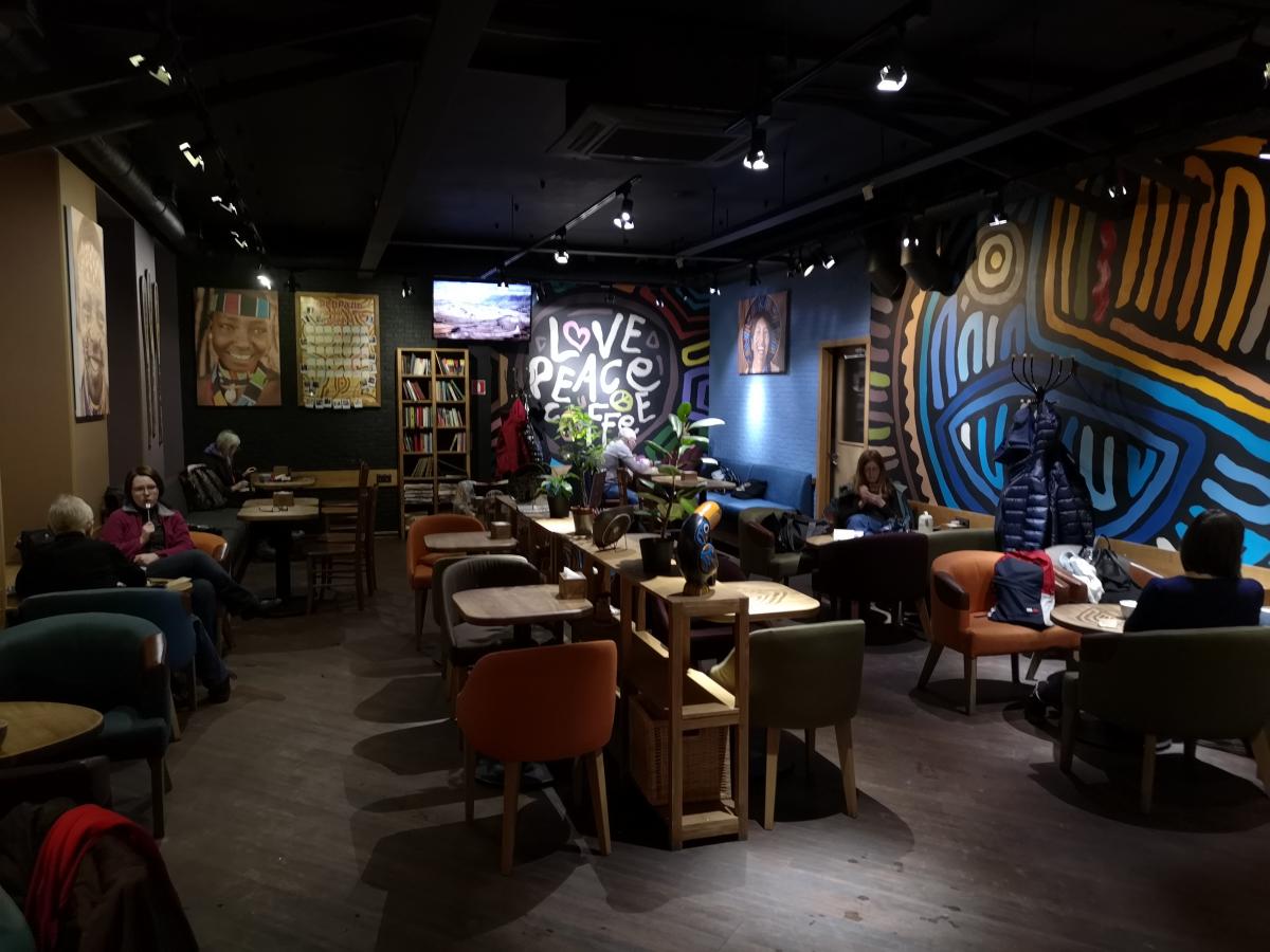Нельзя сказать, что это в чистом виде кофейня, поскольку в меню присутствуют вино и еда, в частности, завтраки весь день.