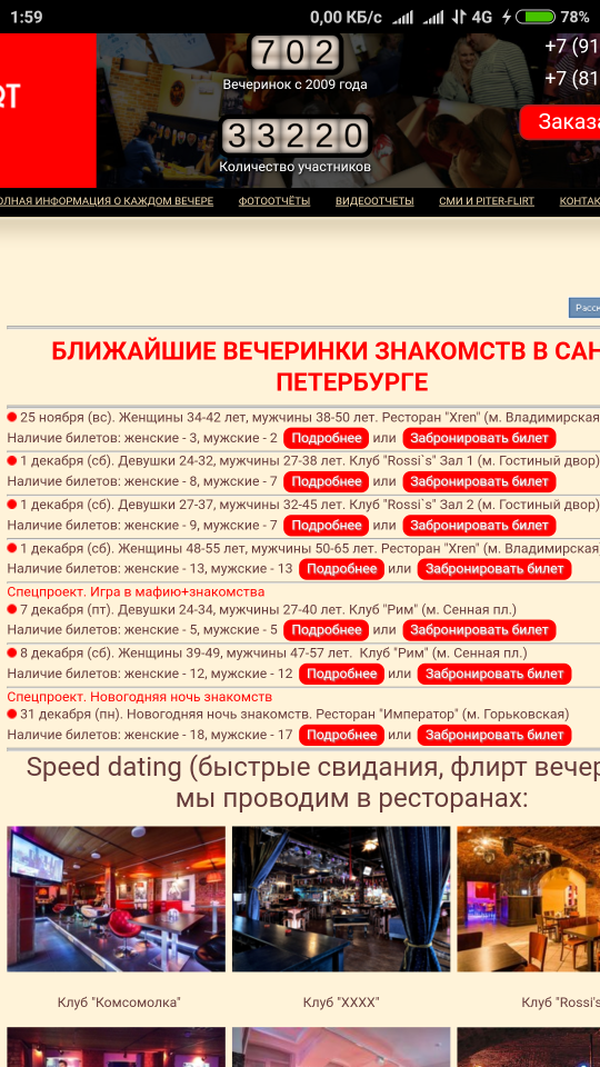 За столиками размещаются мужчины и женщины либо по двое либо вчетвером в зависимости от формата вечеринки(он указан в описании каждой вечеринки в разделе Ближайшие вечеринки) и общаются на свободные, либо на заданные ведущим темы, каждые 5-7 минут, по сигналу мелодии озвученной вначале вечеринки, происходят пересадки от столика к столику: мужчины прибавляют 1 и пересаживаются, например, со 2-ого столика на 3-й, с последнего столика пересаживаются на 1-й. Во время общения вы можете обменяться телефонами с девушкой либо молодым человеком, к которым Вы испытываете симпатию, либо отметить галочкой номер бейджика(не стола!!!) в карточке симпатий, и если она(он) Вас тоже отметит, то Вы оба получите координаты(телефон, id vkontakte) друг друга в течении 1-2-х дней в виде смс.(Если смс не придет, а такое иногда бывает(блокируют операторы, либо что-то с телефоном), обязательно сообщите нам об этом) . Смс должна прийти в любом случае, даже если у Вас нет совпадений симпатий."