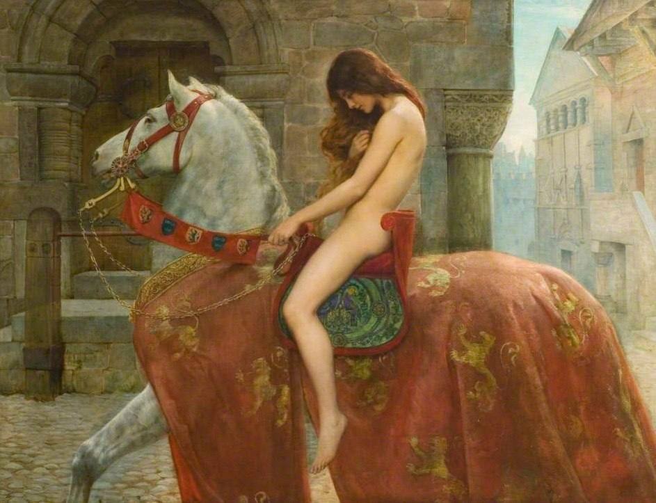 Согласно легенде, Годива была прекрасной женой графа Леофрика. Подданные графа страдали от непомерных налогов, и Годива упрашивала своего мужа снизить налоговый гнёт. Однажды на очередном пиру, будучи сильно пьяным, Леофрик обещал снизить налоги, если его жена обнажённой проедет на лошади по улицам Ковентри. Он был уверен, что это условие будет совершенно неприемлемо для неё.
