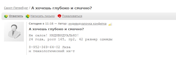 Представилась, правда, какой-то Мариной, возраст 23-25 где-то, рост 172 см, грудь двойка, после проверки