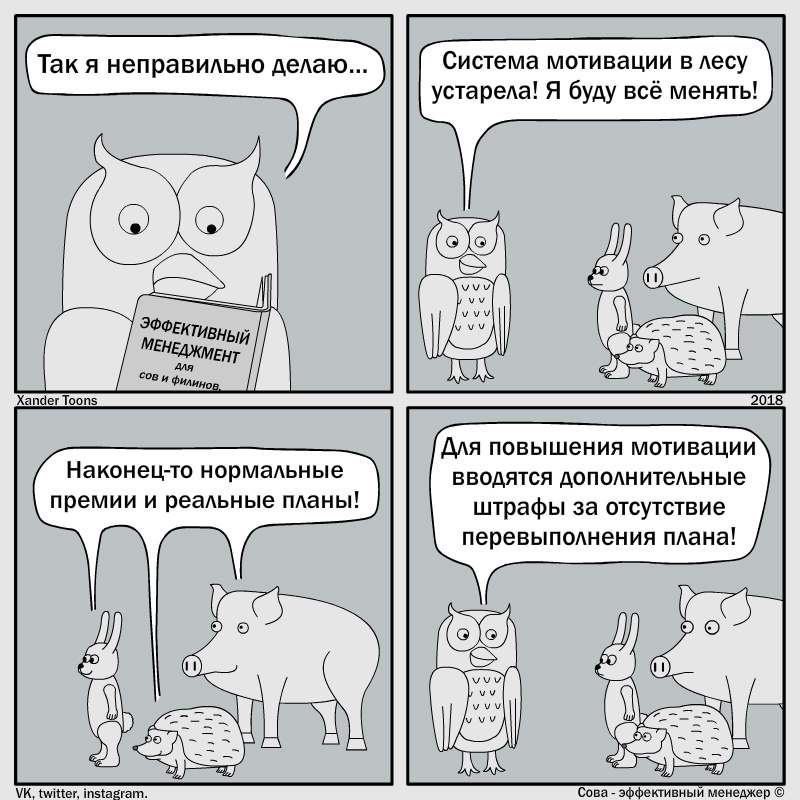 2. Абсолютизация криво переведенных с английского учебников по бизнесу, когда модные бизнес-решения внедряются в каждой фирме, не разбирая, нужно это или нет.
