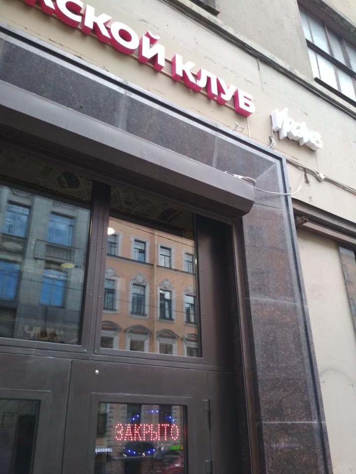 Если бы не большая надпись "Мужской клуб" можно было бы спокойно по видеозвонку говорить жене: "Да, вот, подъехал на деловой ужин... Да, Да, дорогая... ну все, пока... изнутри не буду показывать - шумно, будет не слышно".