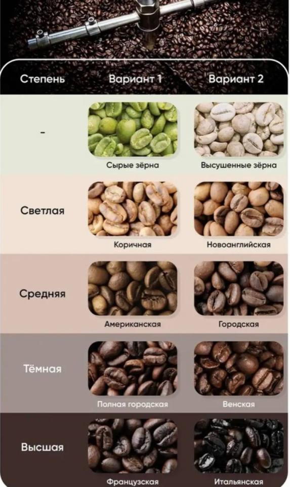 • Испанскую (примерно 250°C). Самая сильная степень обжарки, что называется, на любителя. Во-первых, такую температуру выдерживает не всякое зерно. А во-вторых, то, что выдерживает, частично превращается в пепел (например, содержащаяся внутри целлюлоза)".