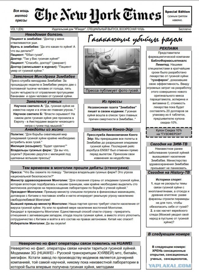 Научное светило Б: Власти скрывают! На самом деле гусиная хуйня уже проникла в Европу - в Амстердаме видели чихающего негра с гусем под мышкой.