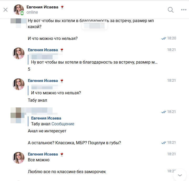 Короче, написал ей в ВК, спросил интересны ли знакомства. Ответила что да, встреча за 5000. Уточнял что входит, написала что табу анал, а так мол всё по классике - поцелуи, МБР, даже вроде разрешает кончать в рот. Приложу скрины переписки, чтоб не думали что я наёбываю. Сразу сказала что не из НН, живёт в области и в Нижнем бывает время от времени. Договорились что напишет как соберётся в город. В общем, недели 1,5 тянулась эта бодяга с перепиской - сказала что приедет вот-вот, но неделю не могла приехать. Раз в пару дней писал ей, отвечала что не приехала и хз когда сможет. В общем, дней через 10 я уже тупо на шару ей написал, мол не планируешь в НН? И тут она ответила что как раз в городе. Ну я предложил встретиться день в день, она и согласилась неожиданно. Так-то договаривались изначально на пару-тройку часов встречу, она ещё предлагала винишка взять. Но в день встречи у неё дела видимо были (кстати как и у меня), так что сказала ничего из алкашки не брать. Ну я пару пива всё равно взял, она как увидела одно пивко всё же всадила. Приехала сама на такси, я ей ничё не вызывал.