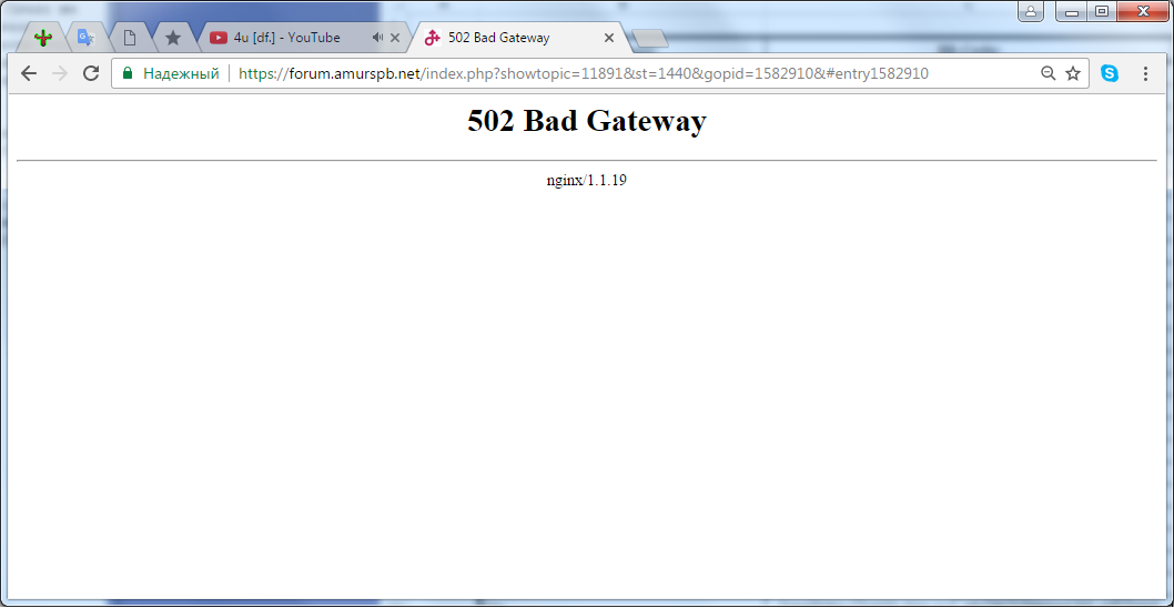 ). Вазникает перадически ф любое время дня и ночи, фне зависимости ат браузера (йа уже даже ТОР успел папробавать - не памагаэ). Ашыпка вазникала не тока у меня - маи знакомые тоже атписывались ап етом, када форум выпадал ф 502 (примечяние: мы фсе - йа, и маи каллеги - нижегароццы, может быть с етим каг-то связано?