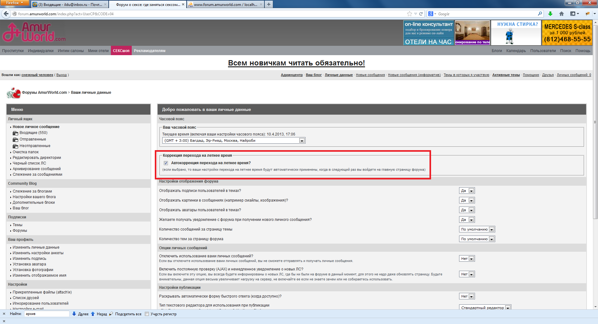 Конечно, у меня нет перехода на летнее время. Но там в меню старая строка "GMT+3 Москва", а мы живем в "GMT+4"! - если дело только в надписе, которая сбивает с толку, то лучше поменять ее. В свое время я перешел на тбилиси GMT+4 без летнего времени, но сейчас и там тоже чушь.