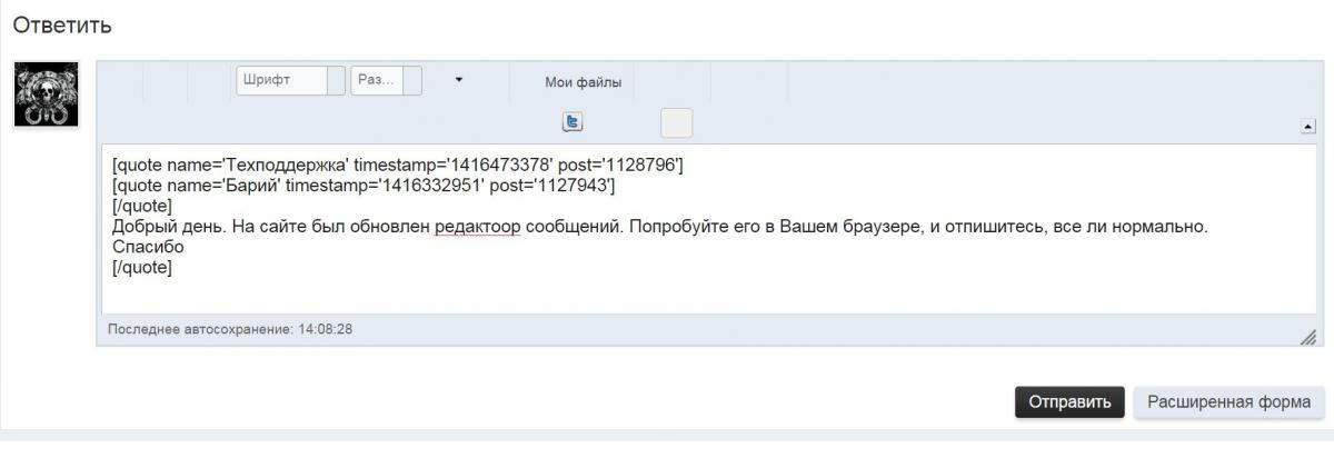 Стили отваливаются. Кнопка "Ответить" в лисе не работает. Но "Цитата" пашет.