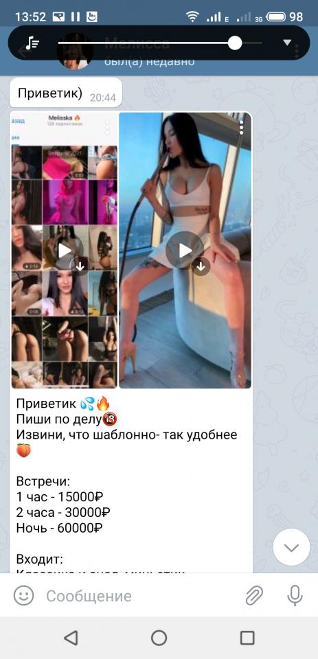 По цене: 20 000 р = 1 час; 40 000 р = 2 часа; ночная встреча = 120 000 р