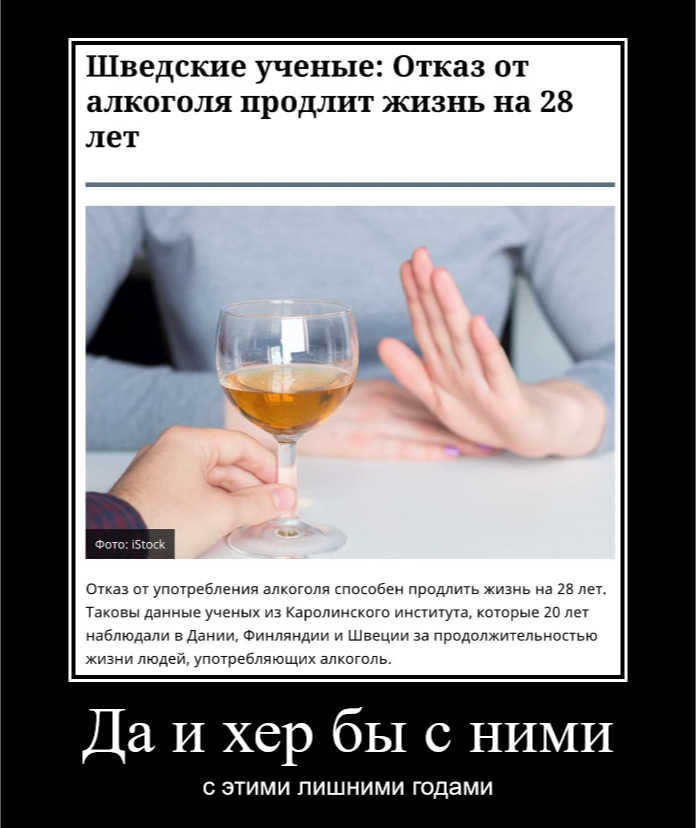 Йасно, хоть съёма не было, но инфа ценноя Прикрепленное изображение: Отказ от алкоголя продлит жизнь (да и хер бы с ними, с этими лишними годами).png .