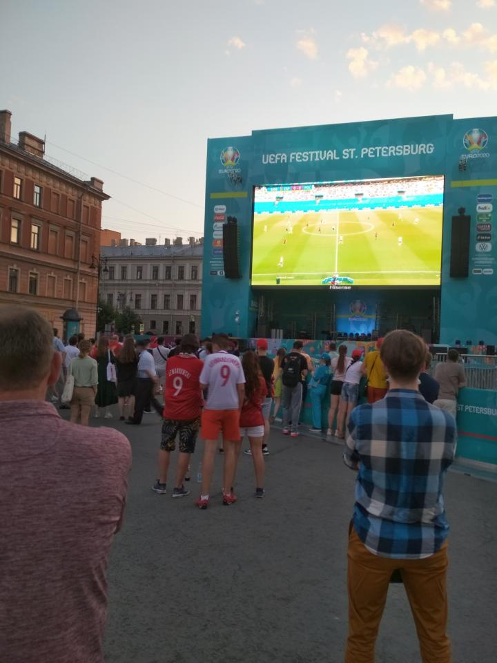 Мельком глянули на экран, и пошли к пивному крану. Заливались, обнимались. Далеко от крана не отходили . Пиво им нравилось , явно больше, чем происходящее на поле..