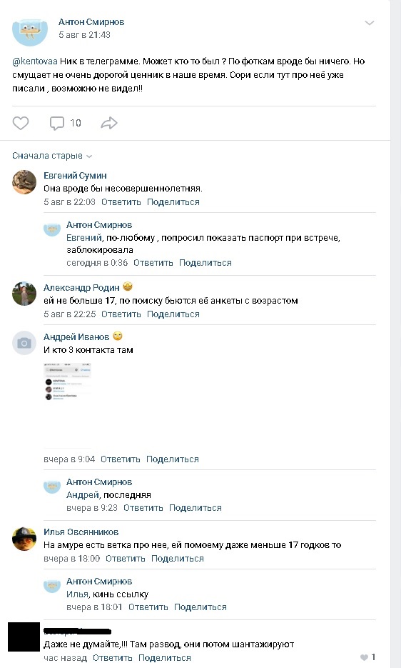 В группе https://vk.com/club120710578 один пользователь написал, что попытался встретиться с девкой https://vk.com/mernemkezz про которую писали на форуме https://amurchat.com/index.php?showtopic=117867&view=findpost&p=2082041 . Спросил у нее про возраст, ответила, что есть 18 лет:
