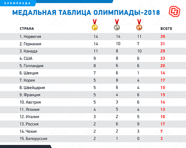Если бы золото выиграли,. скажем, в биатлоне (хотя бы одно в эстафете), коньках (на одной из дистанций), во фристайле (я там плохо разбираюсь, но часто читаю в новостях о победах на каких-то этапах Кубка мира) и в хоккее, это было бы чистое третье место. Где-то откровенно не повезло. В целом, у нас неплохая команда, многие спортсмены в первой десятке в своих видах и не по одному. Однако в текущей ситуации по подсчету нужны безусловные лидеры, как лыжи у мужчин, или фигурное катание в целом (как команда) или фигуристки-одиночницы.