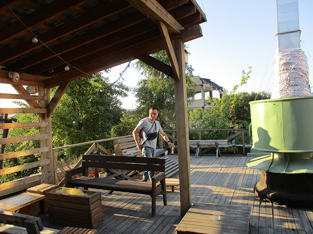 Чего хорошего в "Ласточке" - так это работающий летом бар на крыше. Приятно там покурить на ветерке и чего-нить выпить.