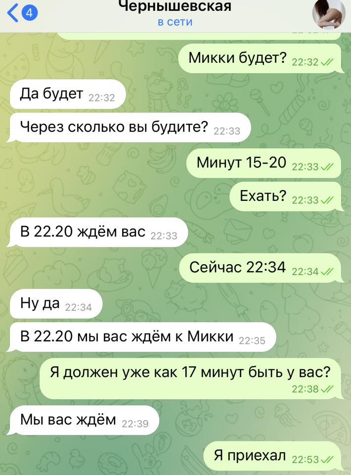 Админ очень странный, по разговору доносят что нужно ехать туда и похуй к кому. Сказали будет 3 на выбор и ещё будет 4я Микки. 4 раза написали что меня ждут. Посмотрев фото/анкеты на рд, записался к Микки.
